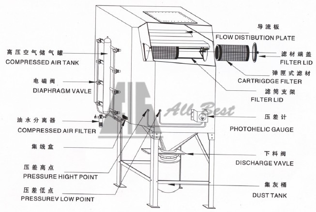 彈匣式集塵機-橫置式工作原理,優(yōu)點等。